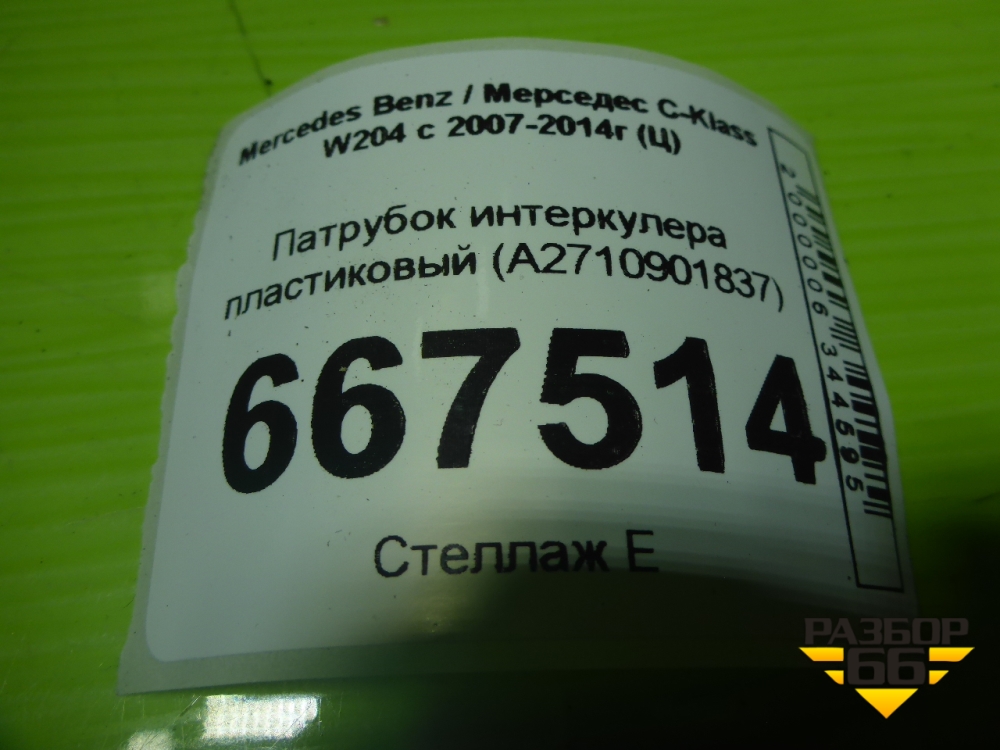 Патрубок интеркулера пластиковый (A2710901837) для Mercedes Benz C-Klass W204 с 2007-2014г (Ц) в Уфе