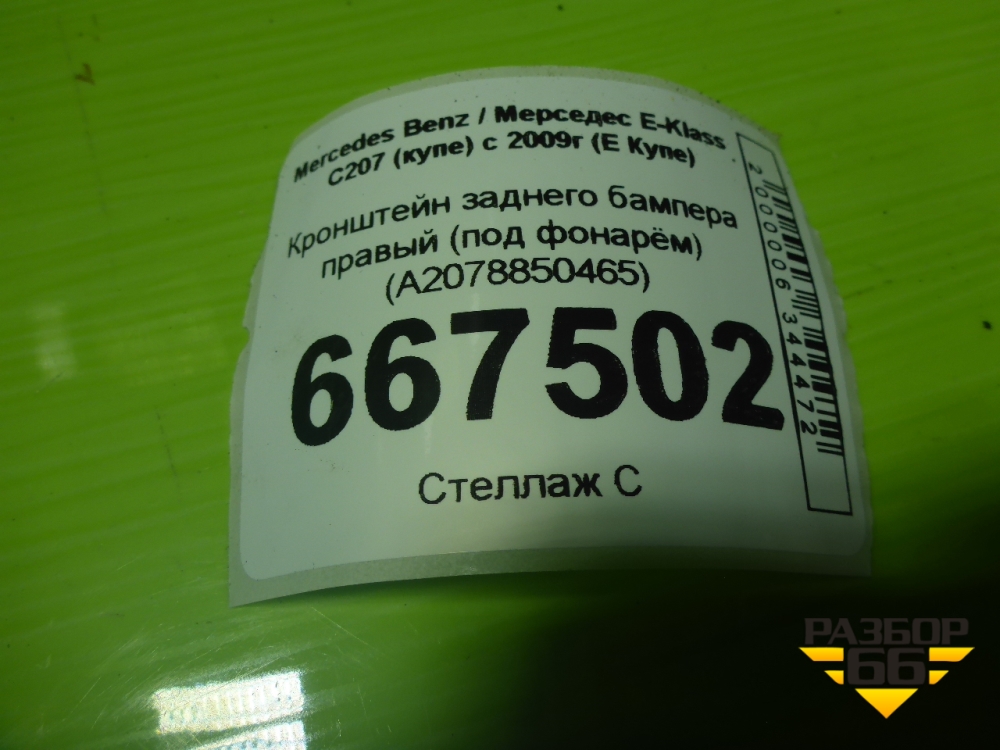 Кронштейн заднего бампера правый (под фонарём) (A2078850465) для Mercedes Benz E-Klass C207 (купе) с 2009г (Е Купе) в Уфе