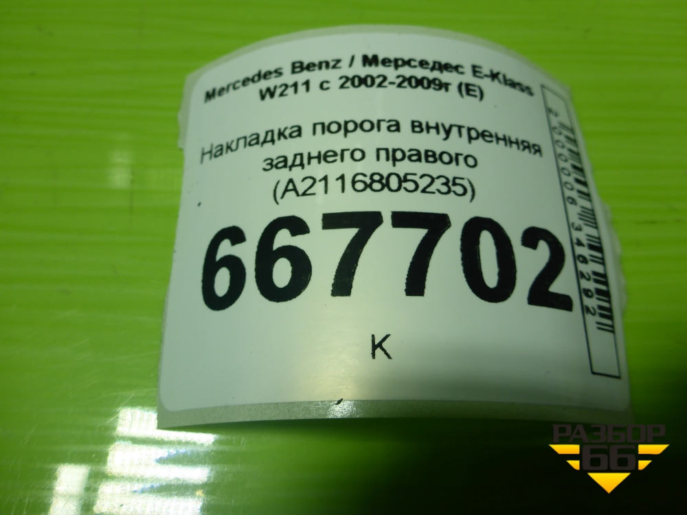 Накладка порога внутренняя заднего правого (A2116805235) для Mercedes Benz E-Klass W211 c 2002-2009г (Е) в Уфе