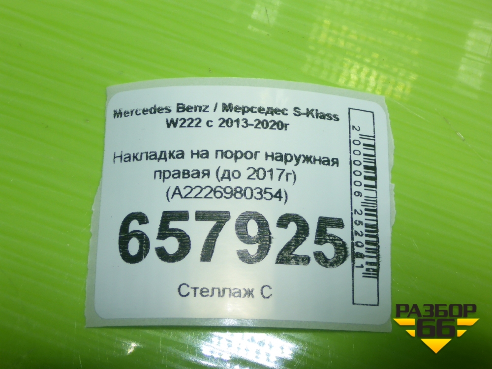 Накладка на порог наружная правая (до 2017г) (A2226980354) для Mercedes Benz S-Klass W222 с 2013-2020г (С) в Уфе