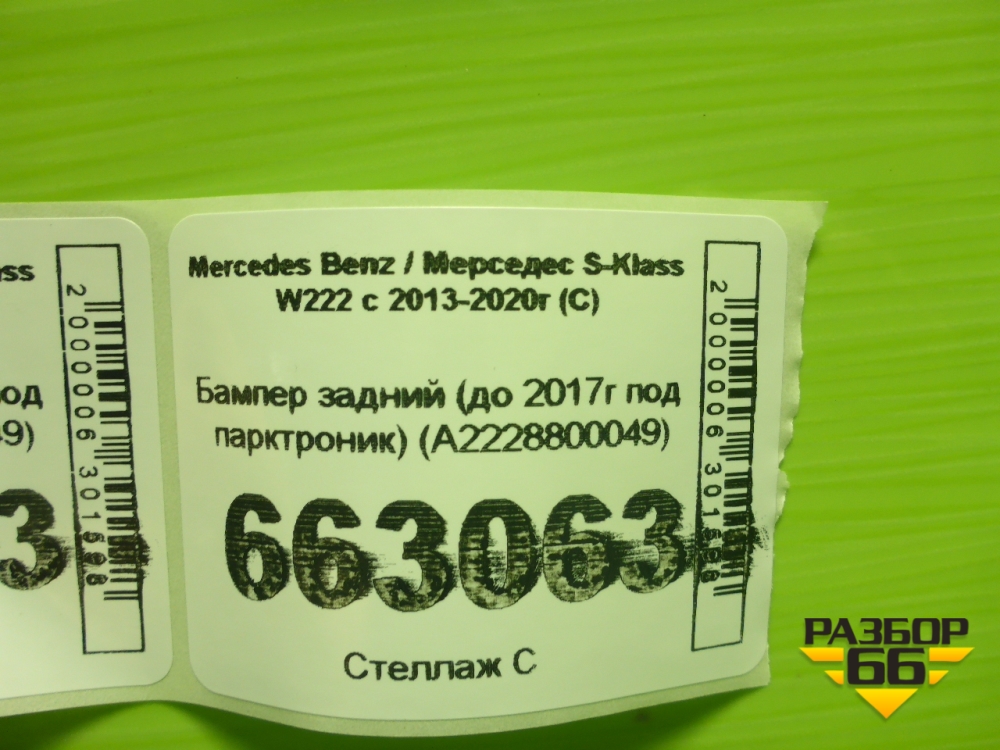 Бампер задний (до 2017г под парктроник) (A2228800049) для Mercedes Benz S-Klass W222 с 2013-2020г (С) в Уфе