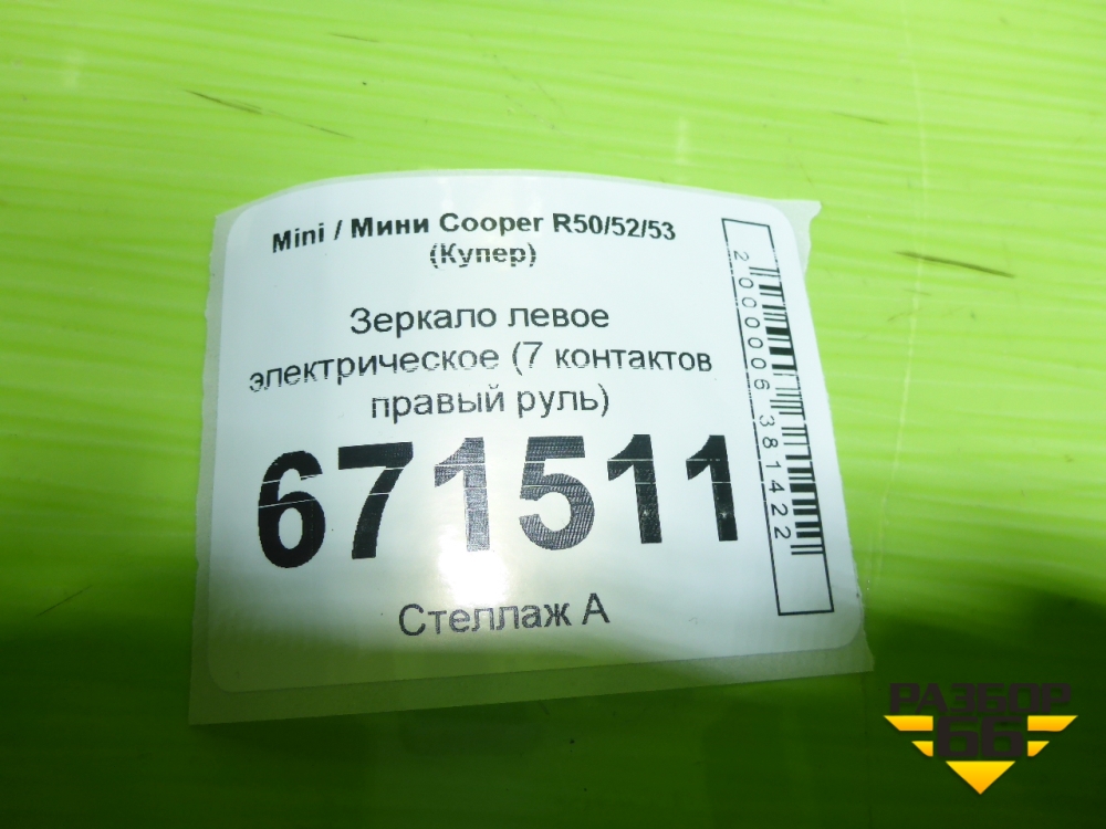 Зеркало левое электрическое (7 контактов правый руль) для Mini Cooper R50/52/53 с 2001-2006г (Купер) в Уфе