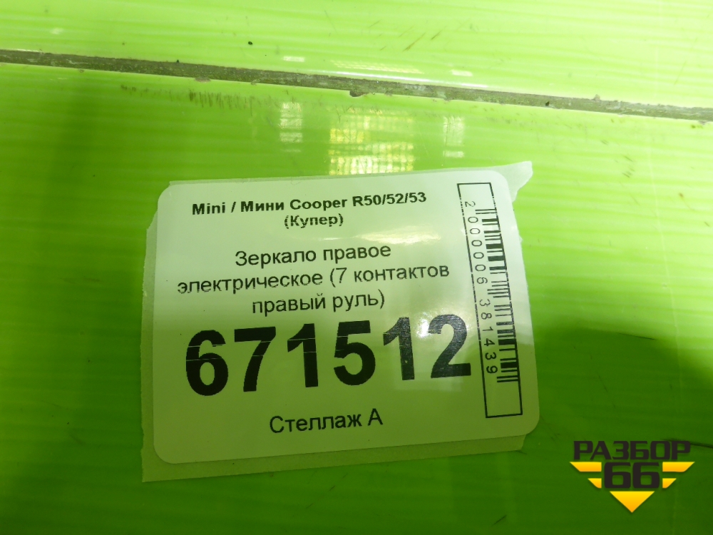 Зеркало правое электрическое (7 контактов правый руль) для Mini Cooper R50/52/53 с 2001-2006г (Купер) в Уфе