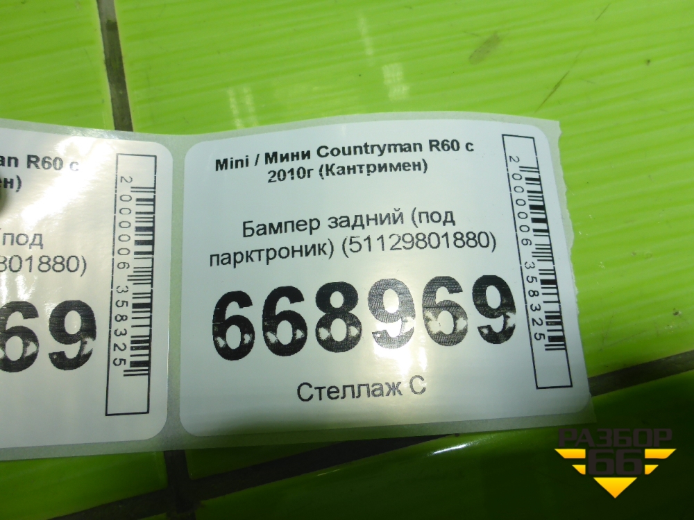 Бампер задний (под парктроник) (51129801880) для Mini Countryman R60 с 2010г (Кантримен) в Уфе