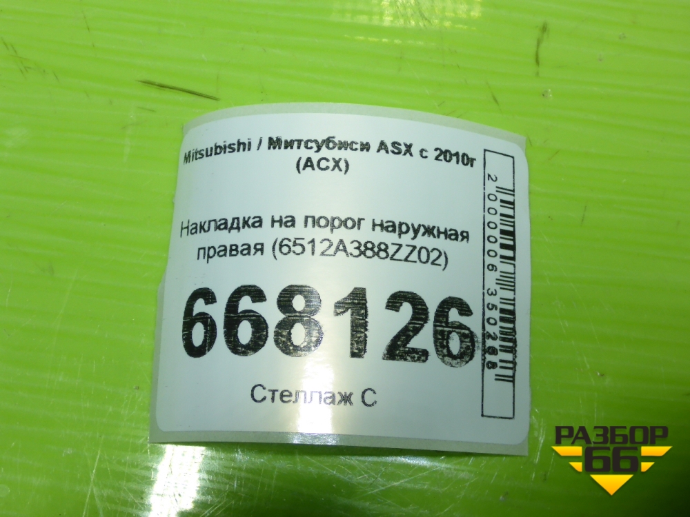Накладка на порог наружная правая (6512A388ZZ02) для Mitsubishi ASX с 2010г (АСХ) в Уфе