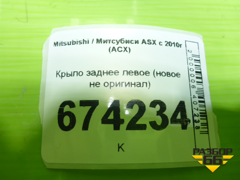 Крыло заднее левое (новое не оригинал) для Mitsubishi ASX с 2010г (АСХ) в Уфе
