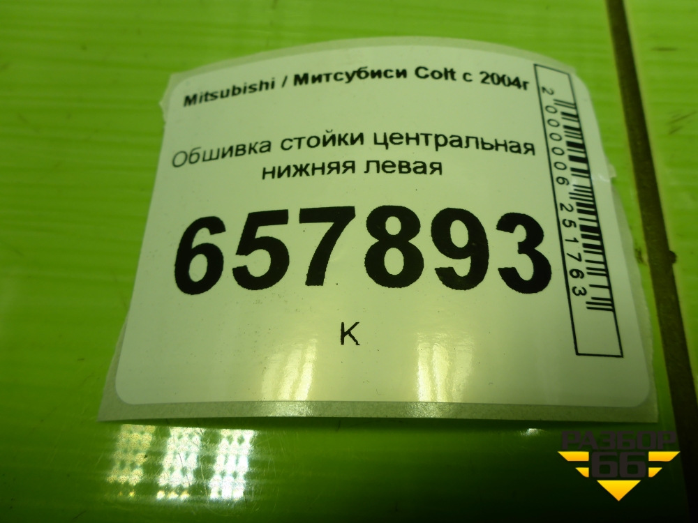 Обшивка стойки центральная нижняя левая (MR951607ZZ) для Mitsubishi Colt с 2004г (Кольт) в Уфе