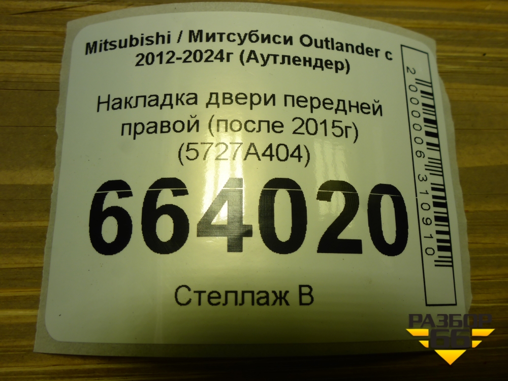 Накладка двери передней правой (после 2015г) (5727A404) для Mitsubishi Outlander с 2012-2024г (Аутлендер) в Уфе
