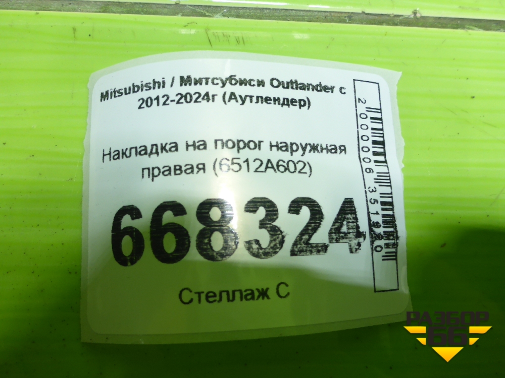 Накладка на порог наружная правая (6512A602) для Mitsubishi Outlander с 2012-2024г (Аутлендер) в Уфе