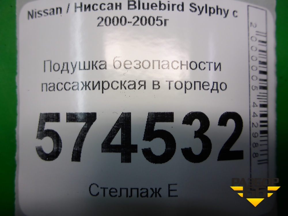 Подушка безопасности пассажирская в торпедо для Nissan Bluebird Sylphy с 2000-2005г (Блюбирд Силфи) в Уфе