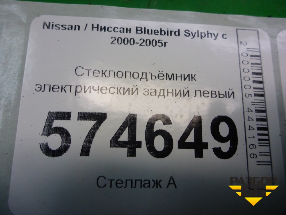 Стеклоподъёмник электрический задний левый (827314M400) для Nissan Bluebird Sylphy с 2000-2005г (Блюбирд Силфи) в Уфе