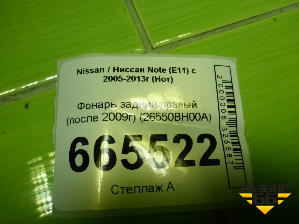 Фонарь задний правый (после 2009г) (26550BH00A) для Nissan Note (Е11) с 2005-2013г (Нот) в Уфе