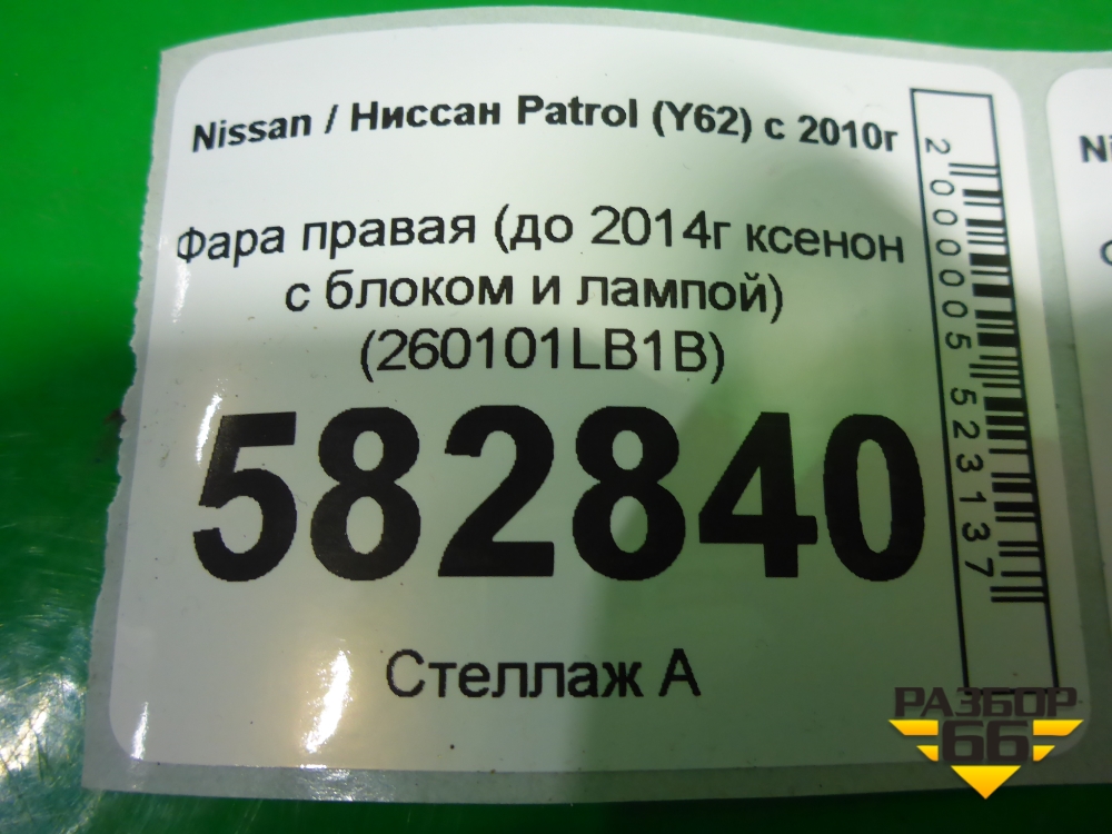 Фара правая (до 2014г ксенон с блоком и лампой установлены би ксеноновые линзы) (260101LB1B) для Nissan Patrol (Y62) с 2010г (Патрол) в Уфе