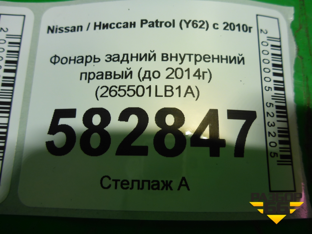Фонарь задний внутренний правый (до 2014г дубликат UNCLE) (265501LB1A) для Nissan Patrol (Y62) с 2010г (Патрол) в Уфе