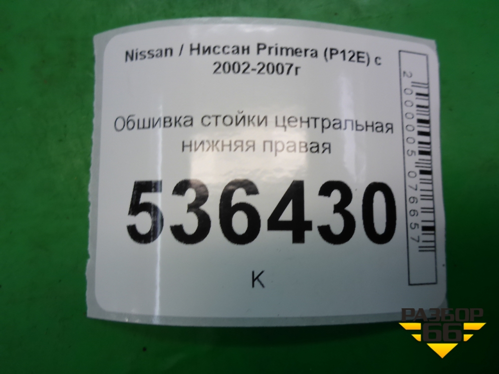 Обшивка стойки центральная нижняя правая (76915AV700) для Nissan Primera (P12E) с 2001-2008г (Примера) в Уфе