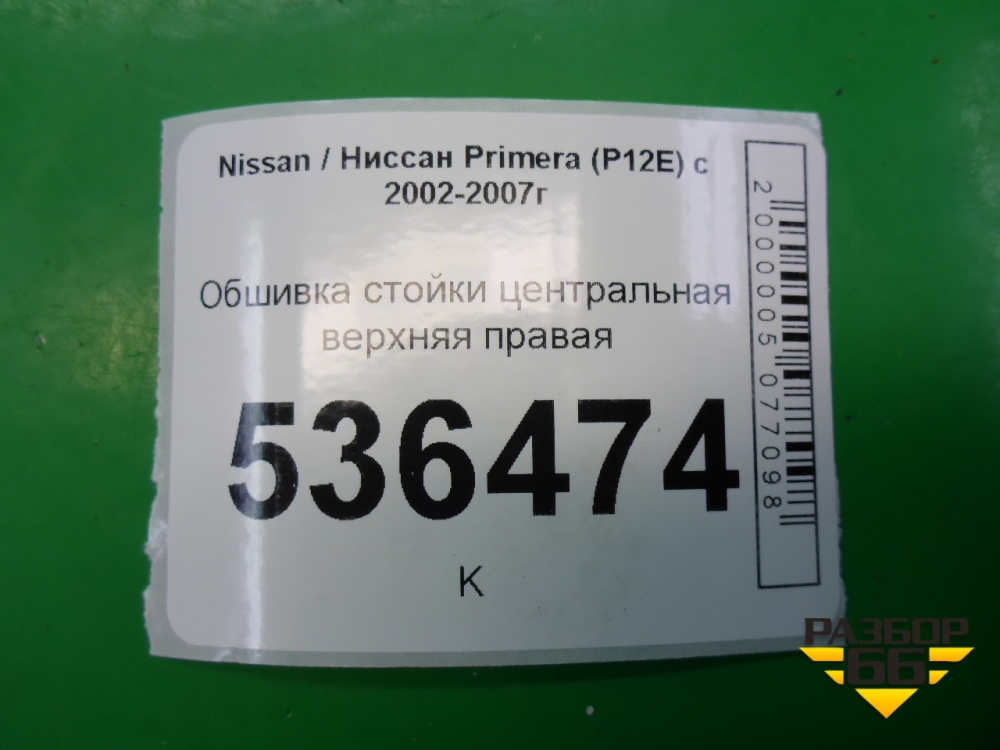 Обшивка стойки центральная верхняя правая для Nissan Primera (P12E) с 2001-2008г (Примера) в Уфе