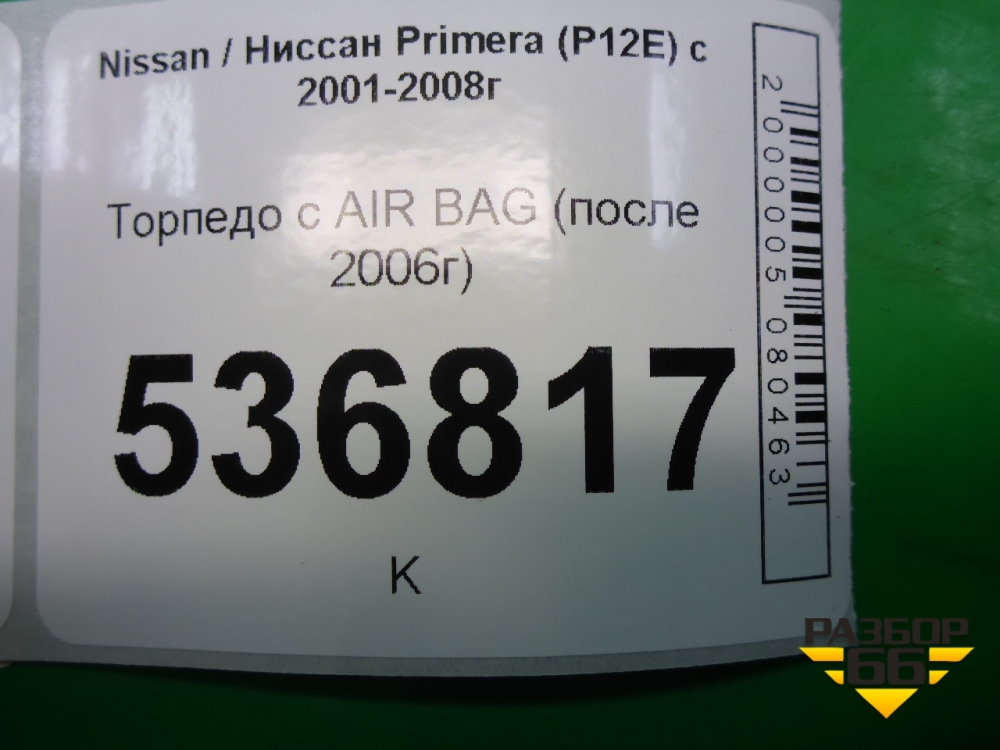 Торпедо с AIR BAG (после 2006г) для Nissan Primera (P12E) с 2001-2008г (Примера) в Уфе