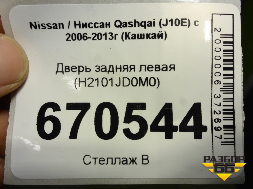 Дверь задняя левая (H2101JD0M0) для Nissan Qashqai (J10E) с 2006-2013г (Кашкай) в Уфе
