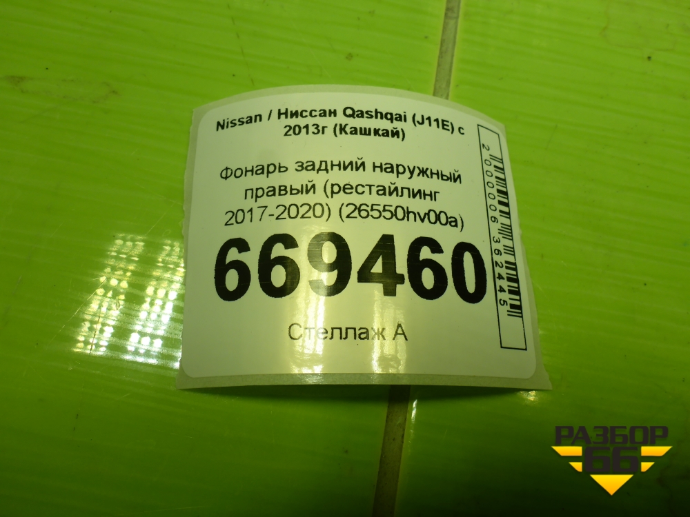 Фонарь задний наружный правый (после 2017г) (26550HV00A) для Nissan Qashqai (J11E) с 2013г (Кашкай) в Уфе