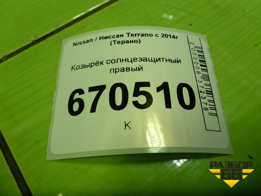 Козырёк солнцезащитный правый для Nissan Terrano с 2014г (Терано) в Уфе