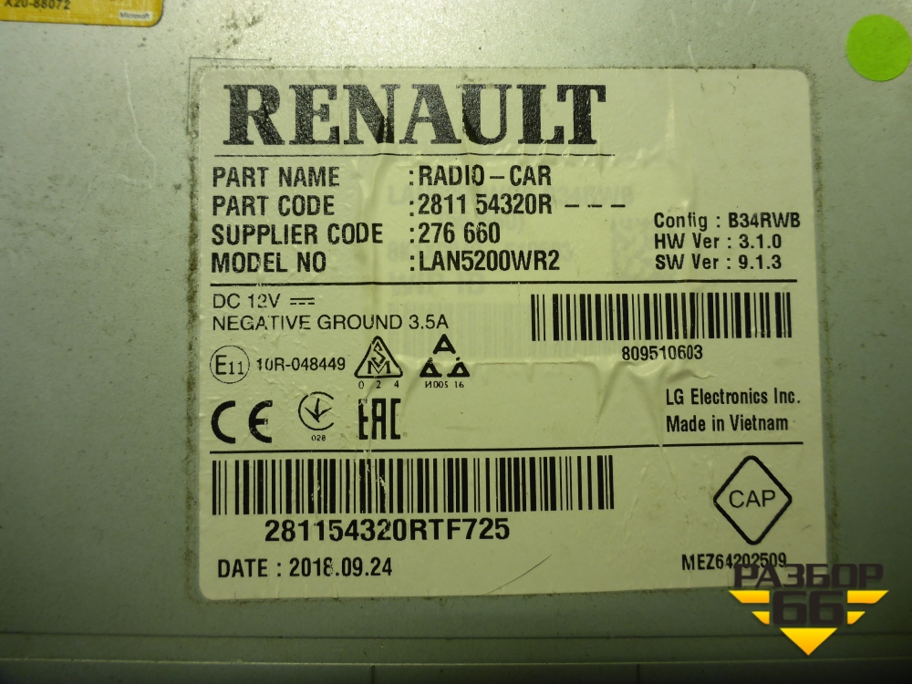 Магнитола (281154320R) для Nissan Terrano с 2014г (Терано) в Уфе