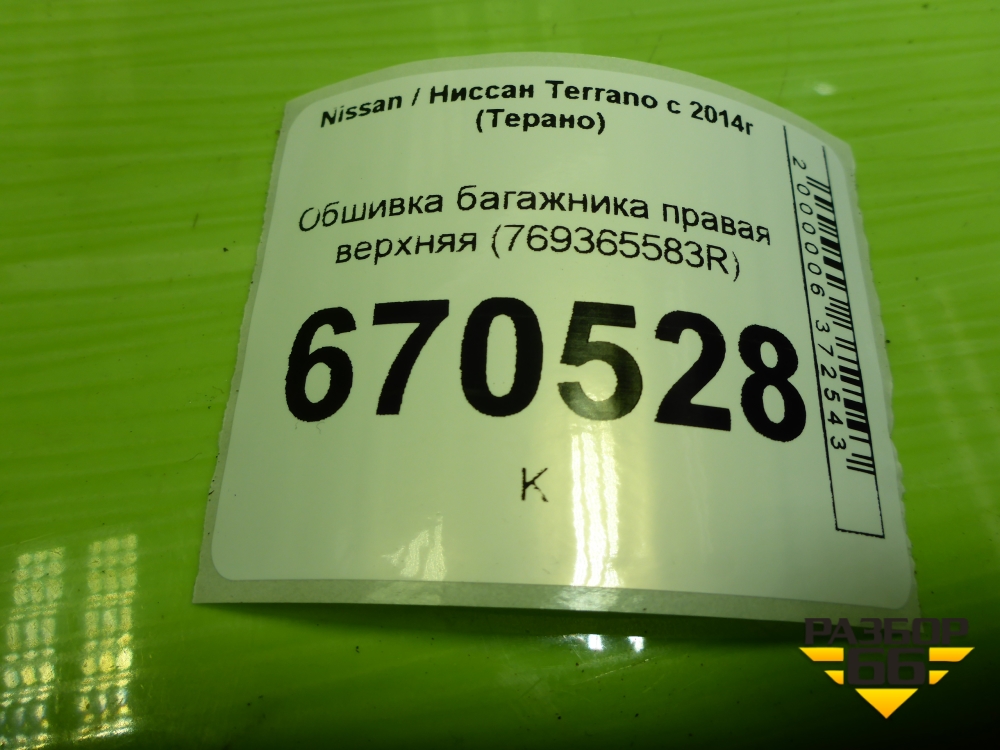 Обшивка багажника правая верхняя (769365583R) для Nissan Terrano с 2014г (Терано) в Уфе