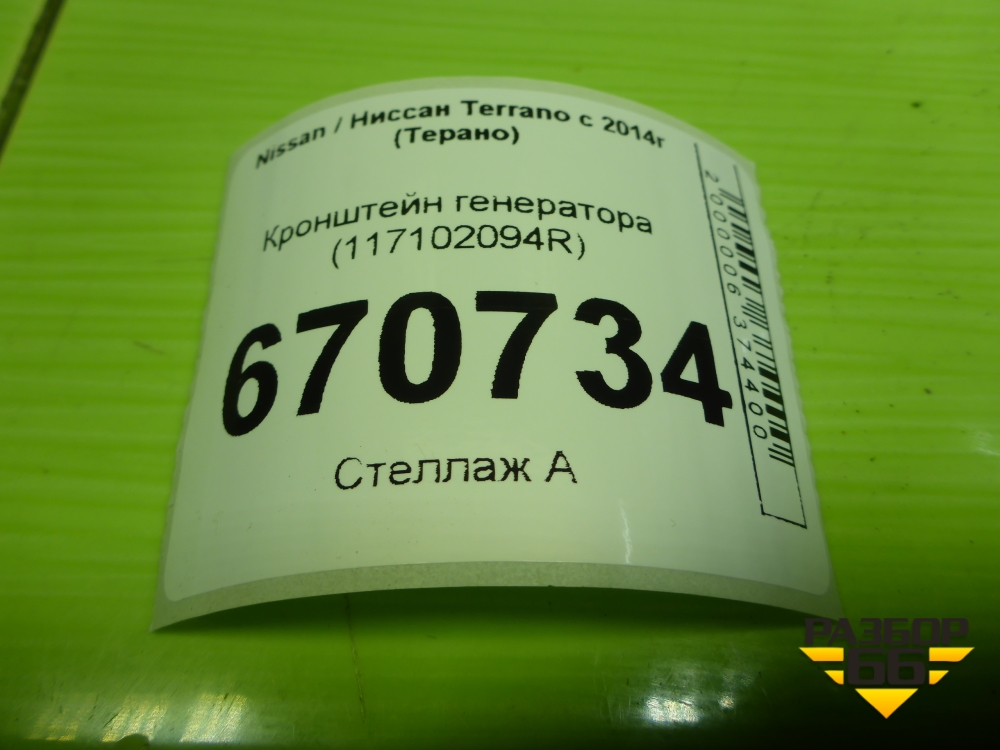 Кронштейн генератора (1.6л H4MD438) (117102094R) для Nissan Terrano с 2014г (Терано) в Уфе