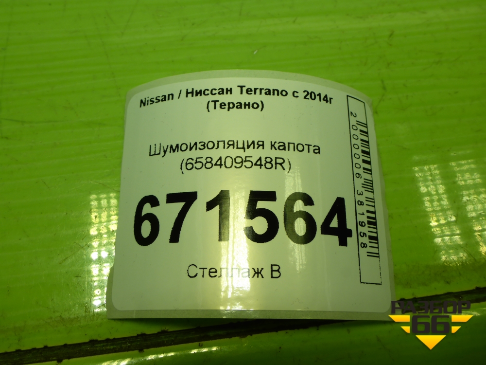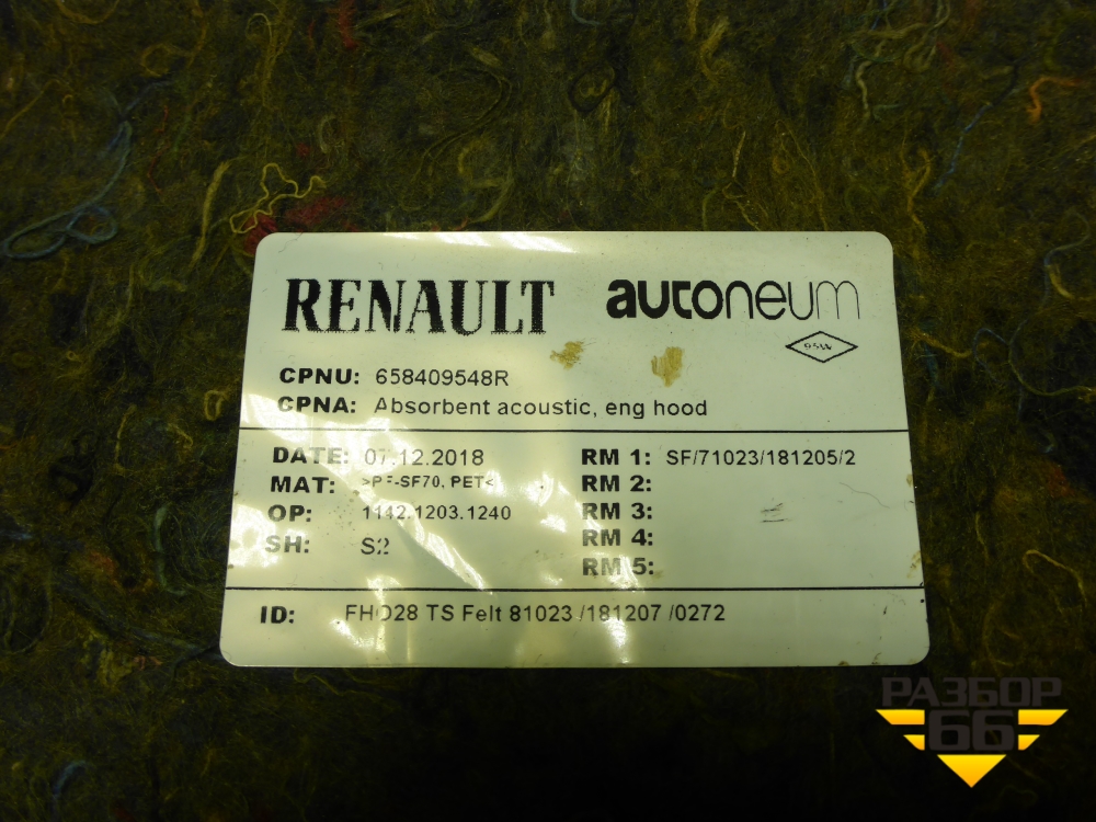 Шумоизоляция капота (658409548R) для Nissan Terrano с 2014г (Терано) в Уфе