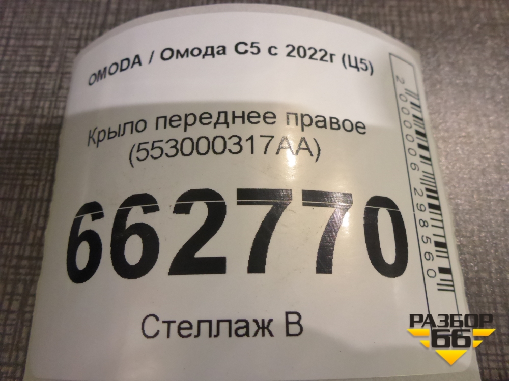 Крыло переднее правое (553000317AA) для OMODA C5 с 2022г (Ц5) в Уфе