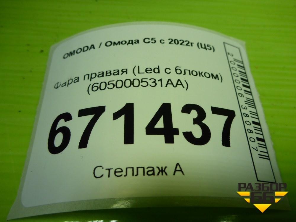 Фара правая (Led с блоком) (605000531AA) для OMODA C5 с 2022г (Ц5) в Уфе