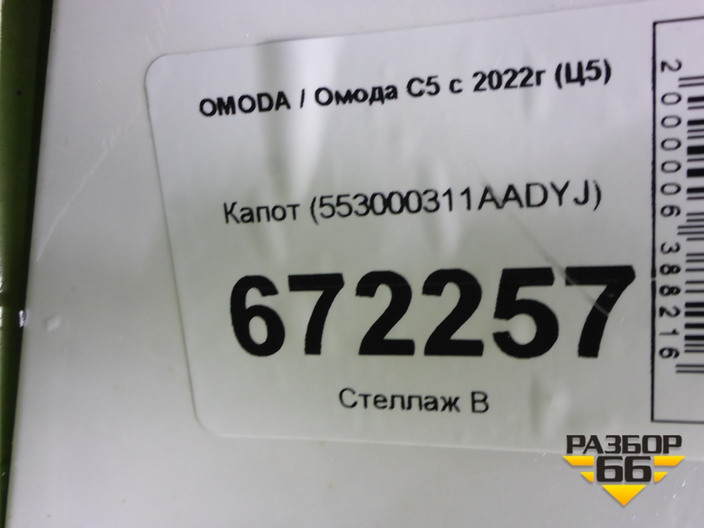 Капот (553000311AADYJ) для OMODA C5 с 2022г (Ц5) в Уфе