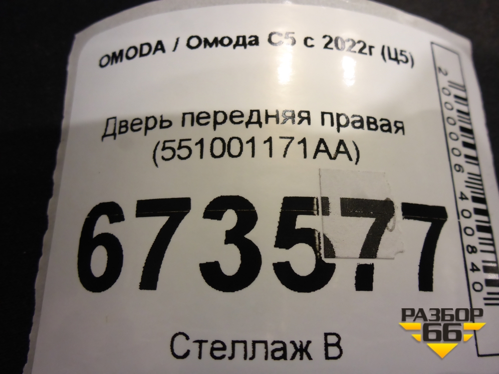Дверь передняя правая (551001171AA) для OMODA C5 с 2022г (Ц5) в Уфе