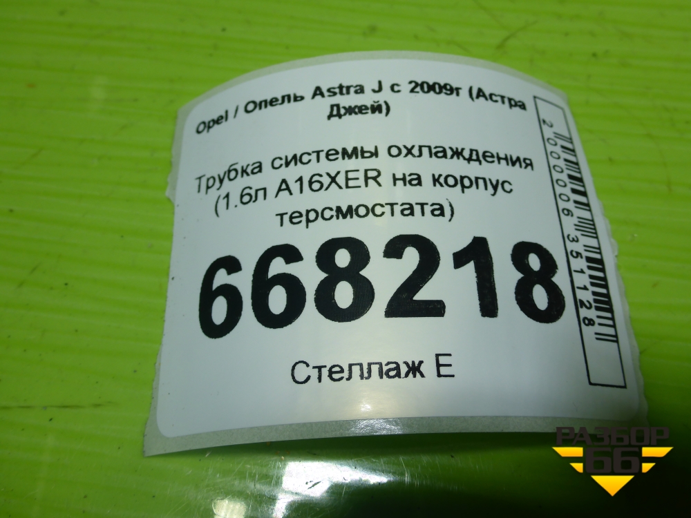 Трубка системы охлаждения (1.6л А16ХЕR на корпус терсмостата) (55353329) для Opel Astra J с 2009г (Астра Джей) в Уфе