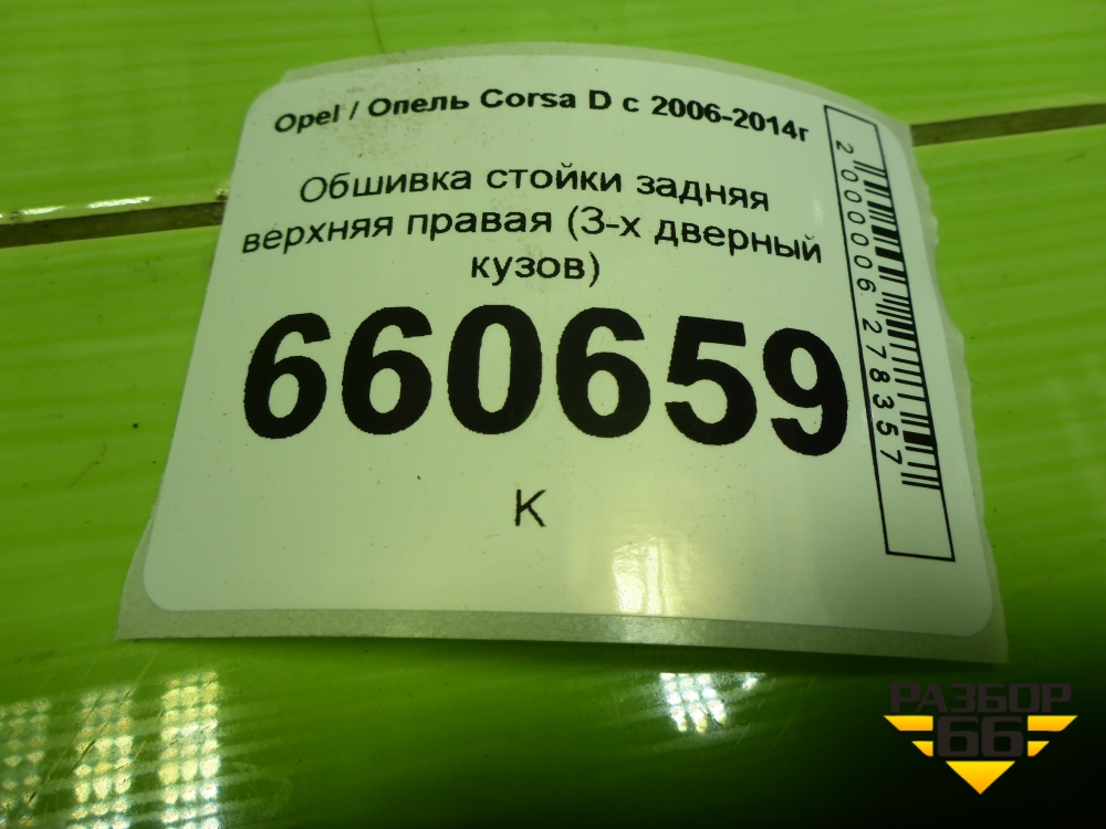 Обшивка стойки задняя верхняя правая (3-х дверный кузов) (1318051) для Opel Corsa D с 2006-2014г (Корса Д) в Уфе