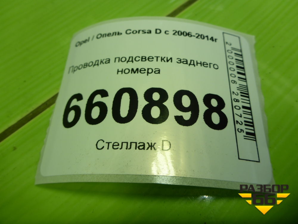Проводка подсветки заднего номера (91890A2120) для Opel Corsa D с 2006-2014г (Корса Д) в Уфе