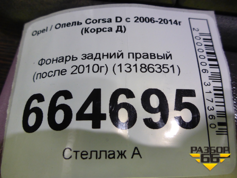 Фонарь задний правый (после 2010г) (13269051) для Opel Corsa D с 2006-2014г (Корса Д) в Уфе