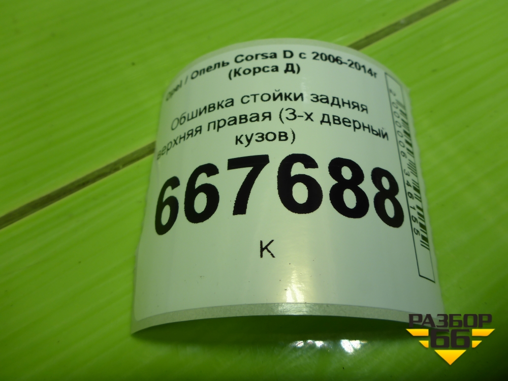 Обшивка стойки задняя верхняя правая (3-х дверный кузов) (13180581) для Opel Corsa D с 2006-2014г (Корса Д) в Уфе