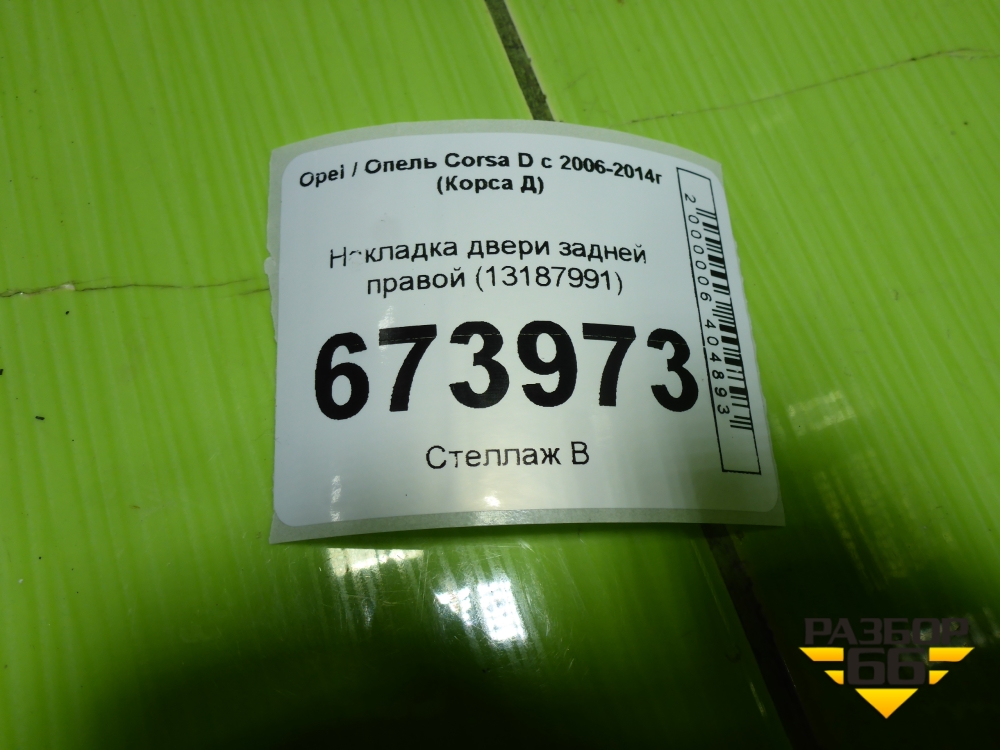 Накладка двери задней правой (13187991) для Opel Corsa D с 2006-2014г (Корса Д) в Уфе