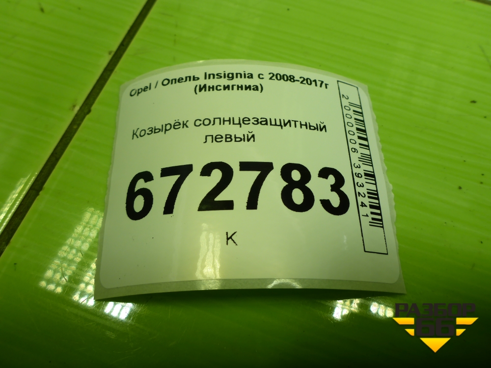 Козырёк солнцезащитный левый для Opel Insignia с 2008-2017г (Инсигниа) в Уфе