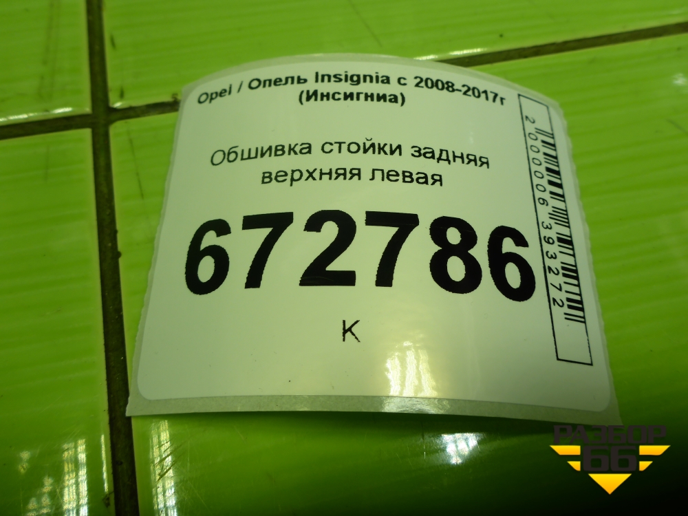 Обшивка стойки задняя верхняя левая (13221259) для Opel Insignia с 2008-2017г (Инсигниа) в Уфе