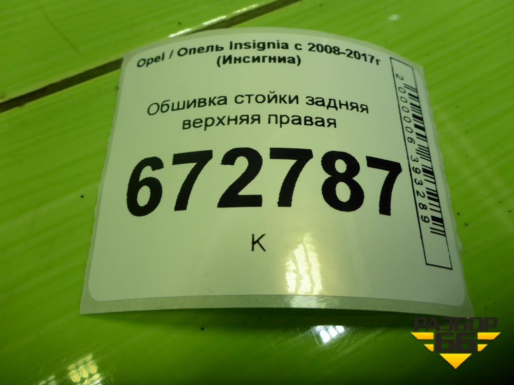 Обшивка стойки задняя верхняя правая (13221260) для Opel Insignia с 2008-2017г (Инсигниа) в Уфе