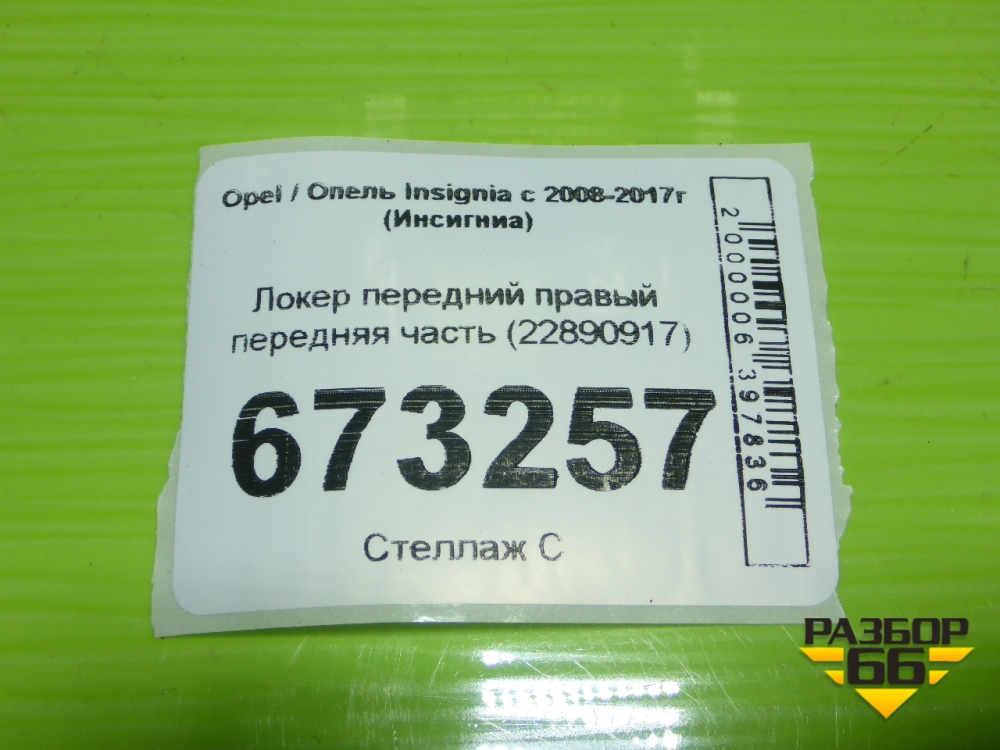 Локер передний правый передняя часть (22890917) для Opel Insignia с 2008-2017г (Инсигниа) в Уфе