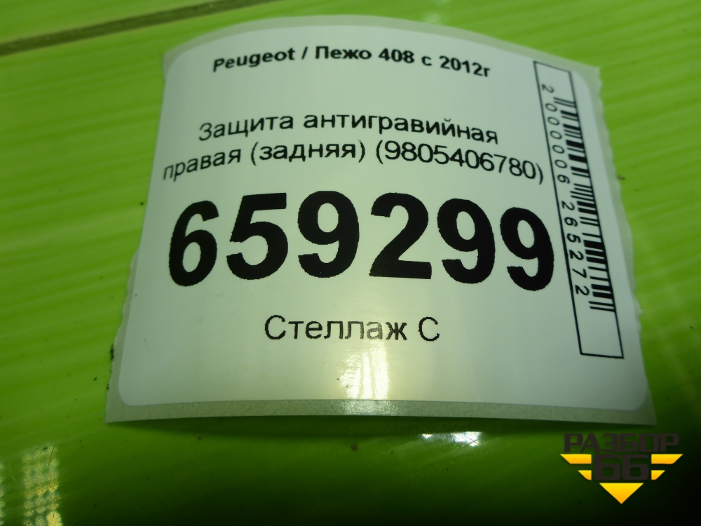 Защита антигравийная правая (задняя) (9805406780) для Peugeot 408 с 2012г в Уфе