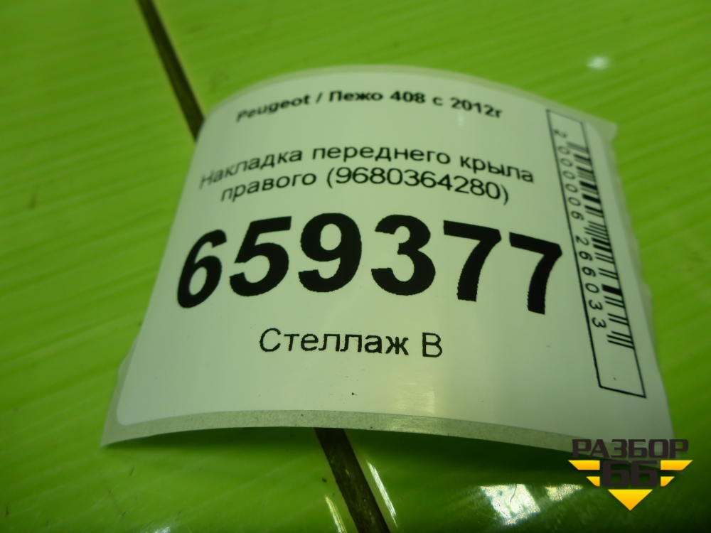 Накладка переднего крыла правого (9680364280) для Peugeot 408 с 2012г в Уфе