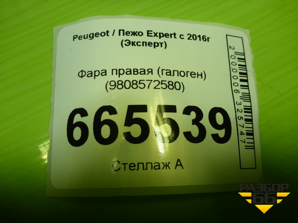 Фара правая (галоген) (9808572580) для Peugeot Expert с 2016г (Эксперт) в Уфе