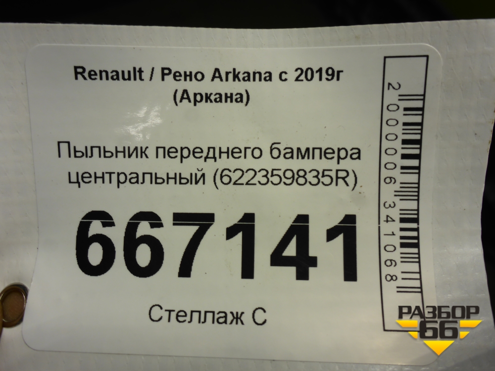 Пыльник переднего бампера центральный (622359835R) для Renault Arkana с 2019г (Аркана) в Уфе