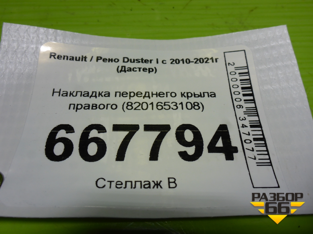 Накладка переднего крыла правого (8201653108) для Renault Duster I с 2010-2021г (Дастер) в Уфе