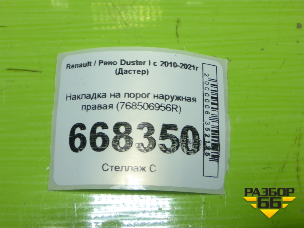Накладка на порог наружная правая (768506956R) для Renault Duster I с 2010-2021г (Дастер) в Уфе