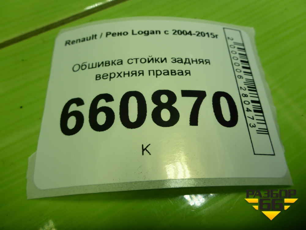Обшивка стойки задняя верхняя правая (8200212991) для Renault Logan с 2004-2015г (Логан) в Уфе