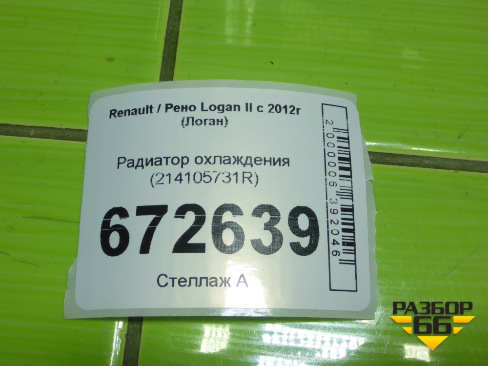 Радиатор охлаждения (214105731R) для Renault Logan II с 2012г (Логан) в Уфе